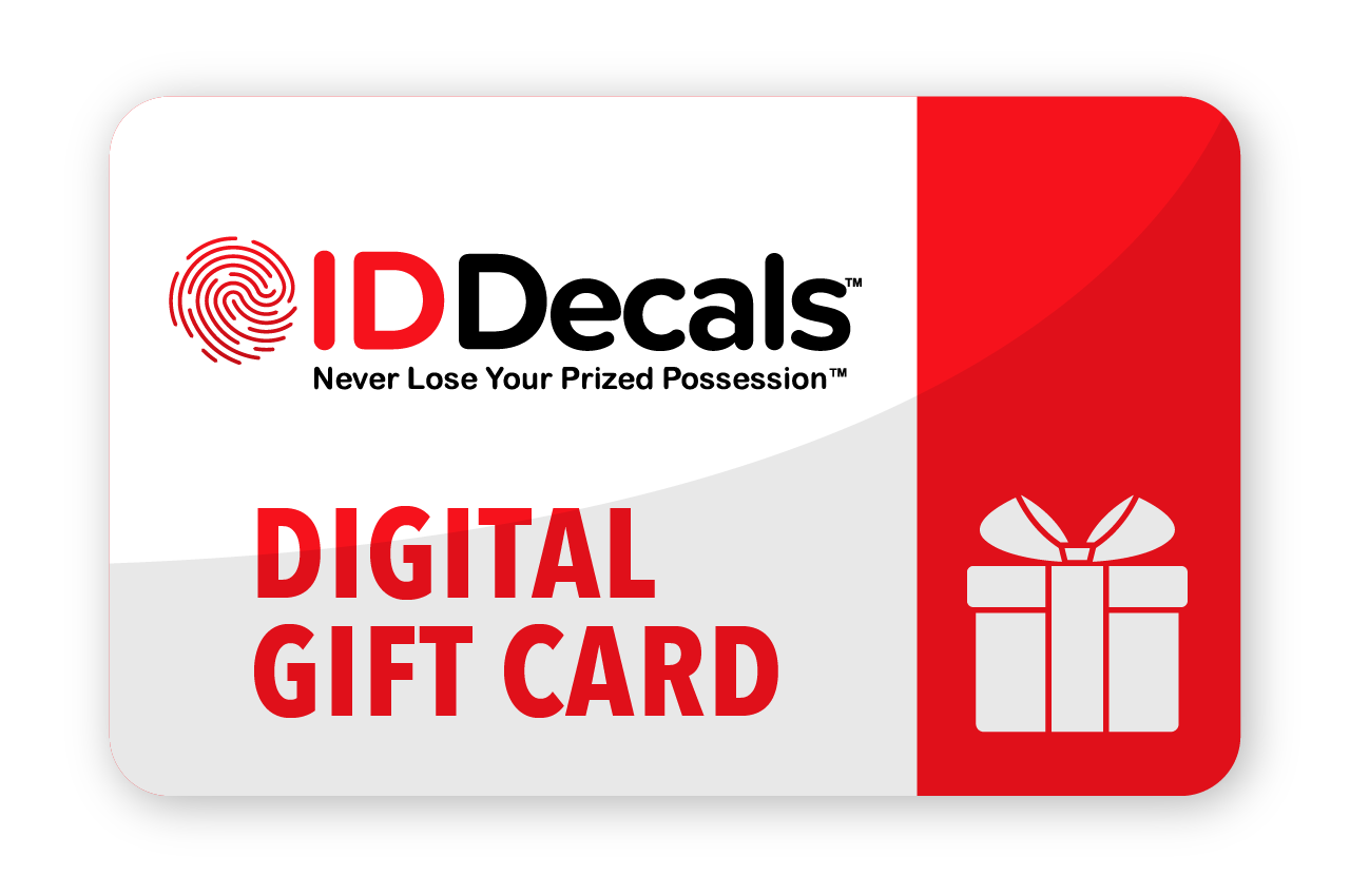 ID Decals make a great gift for family, friends, teachers and anyone who needs to identify and protect their items. Gift card is electronic and delivered by email, to be redeemed on iddecals.com. Gift cards are not qualify purchases for promotional offers.